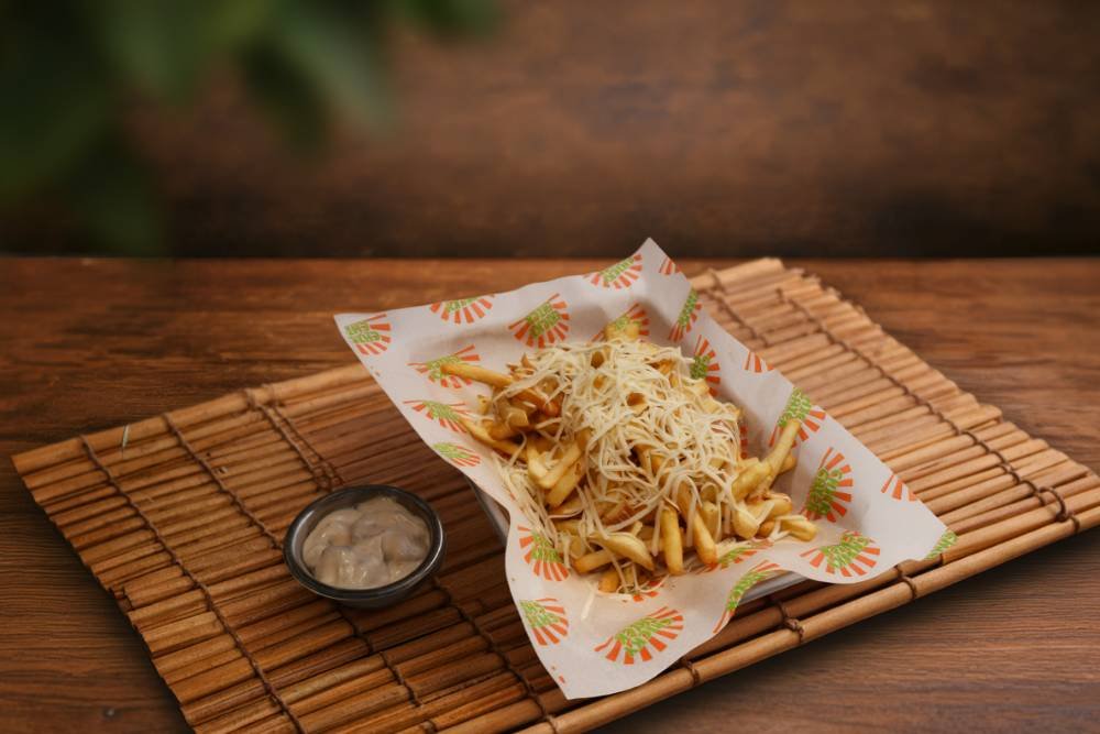 (Trüf yağı ile tatlandırılmış; rende kaşar, çıtır soğan ve trüf aoli sos ile)